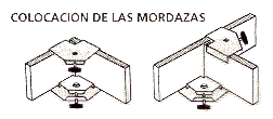 La broca-fresa y los tornillos especiales existen para ensamble de tableros de 16 mm (medida del tornillo 5 x 50 mm) y para 19 mm ó más (7 x 50 mm). Si queremos ensamblar tableros de 10 mm lo haremos con broca y tirafondos estándar. Es importante elegir un orden lógico de ensambles para ir montando el mueble según vayamos haciendo estos. Lo siguiente que debemos saber es la colocación de las mordazas según queramos el ensamble. La siguiente figura aclarará esta cuestión: