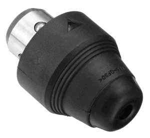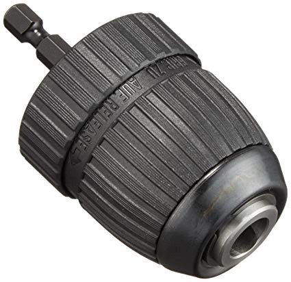 2. PORTABROCAS DE SUJECIÓN RÁPIDA. Este portabrocas es más moderno que el anterior y prescinde de la llave externa. Para abrir y cerrar, simplemente hay que girar la parte exterior del mismo y sujetar con la otra mano la parte mas cercana al taladro. El procedimiento es el mismo, se abre lo suficiente, se mete la broca y se vuelve a cerrar.
